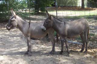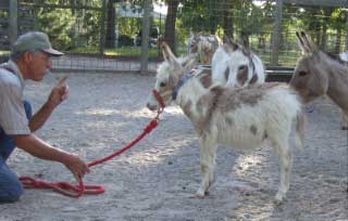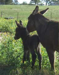 They selected two older, bred jennys to teach them the "ropes" of donkey ownership and we are delighted that Rachel and Ginger will be staying together. We know they are good donkey teachers; they taught us! They also picked out two young jennys, and we will breed them in the fall for their first foals. And last, but certainly not least, they chose Giz, Mr. Personality Plus! We feel good that these little donkeys have moved to a good home with lots of love! |