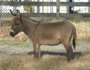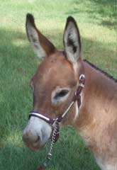 Sold Jerry, Melodie and their daughter, Emilee, are just beginning to build their herd of miniature donkeys and have six jennys. They selected J.D. and a light sorrel jenny, Punkin Pie, to join their family of donkeys. They are planning to show J.D. this spring, and next year they will be looking for a little sorrel foal as Punkin is bred to our dark sorrel herdsire, My World Red Alert. |