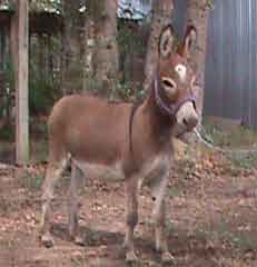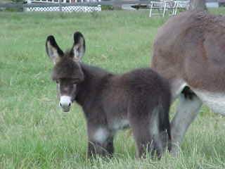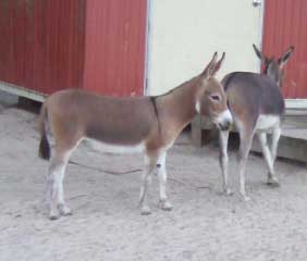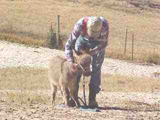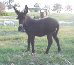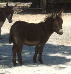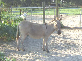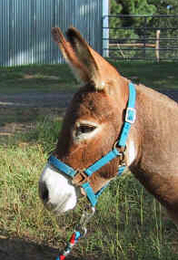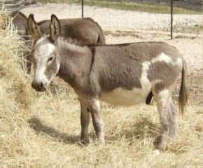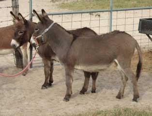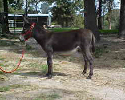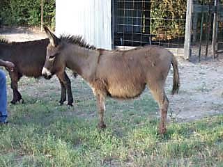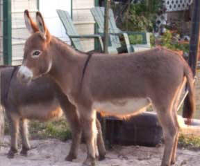 Sold This little jenny and her best friend, Red Feather, are the first miniature donkeys for this family, and we know they are already wrapped around Jim's heartstrings because they have been in Scottsdale for two weeks, and I haven't heard much from Jim! When I email and ask him if everything is alright, he sends back a note that says all is great, and he is busy sitting out in the pasture with the girls and reading his new donkey books! |
