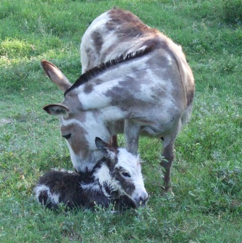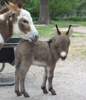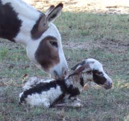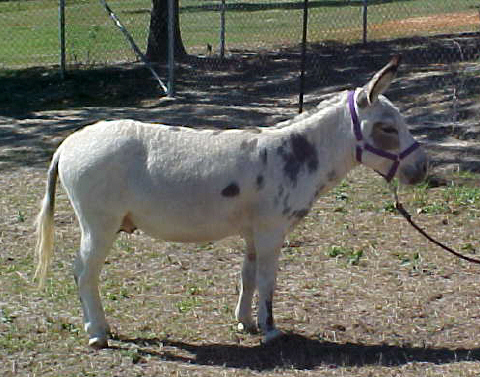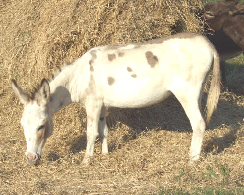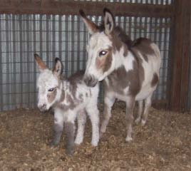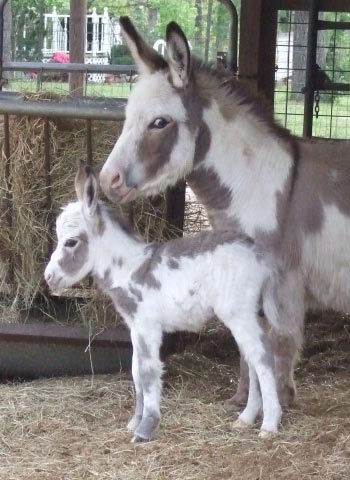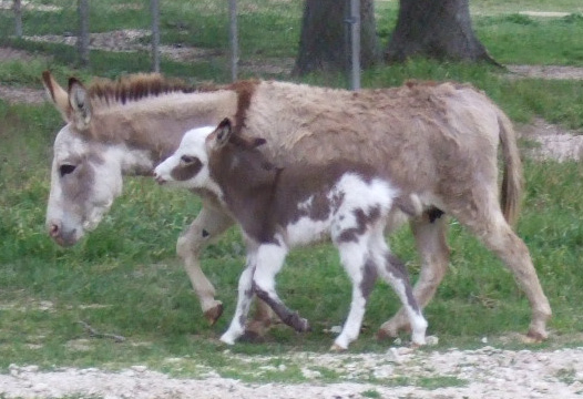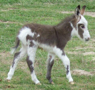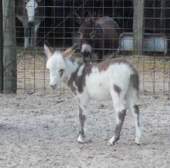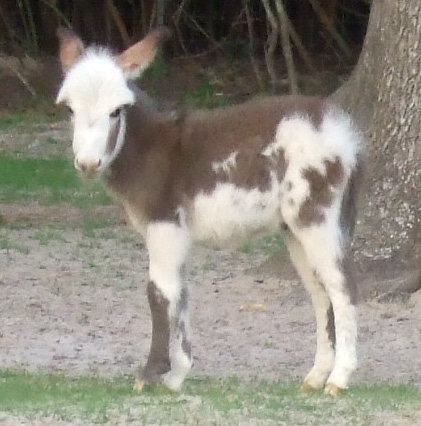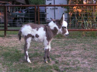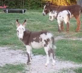 Sold Many thanks to Cotten's Half Ass Ranch in Longview, Texas for choosing Pocket Change as their future spotted herdsire! Mic and Rusty are putting together a nice herd of donkeys, and we are thrilled that they added three of our little spotted donkeys to their collection! We think Pocket will produce some fantastic babies when he is mature, but just think of the fun they are going to have watching him grow up! |