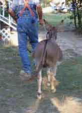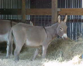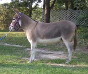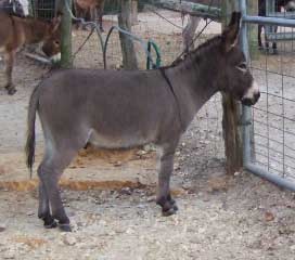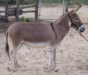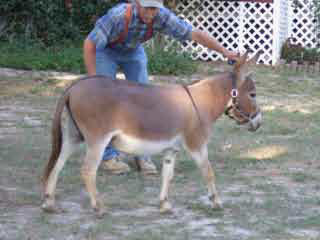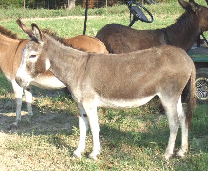 Sold Last year, Karon bought donkeys for each of her daughters, but this year she's buying for herself! She fell in love with Mick when he was just a baby and now has selected him to stand herdsire for a small group of jennys that she is busy collecting! Look out! Karon has donkey fever, and her husband, Larren, is nervous! |