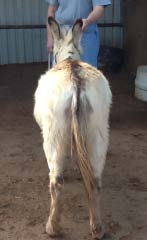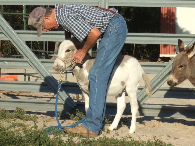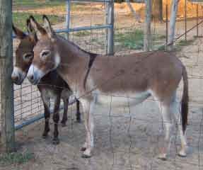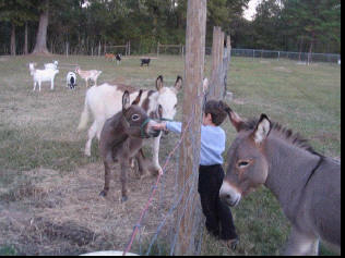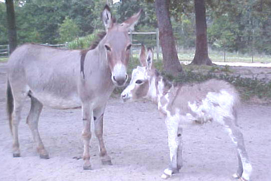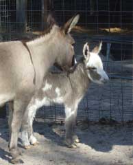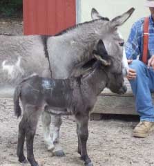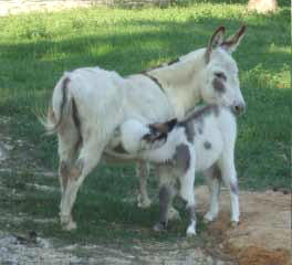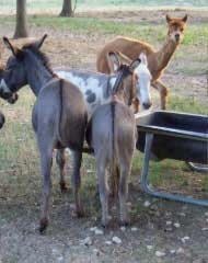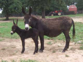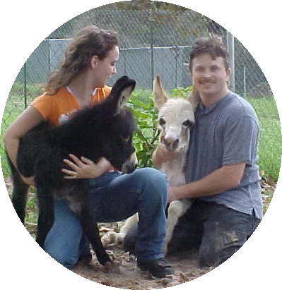 Many thanks to Greg and Jessica Parsons Vuelo De Noche Farm Boerne, Texas Jessica fell in love with Levi Tag when he was just a few weeks old and has been waiting a long time for him to be old enough to wean. Well, that time has finally come, and Levi will be moving to his new home soon, but we know that it won't take him long to teach Jessica and Greg how to give donkey hugs and butt scratches! |