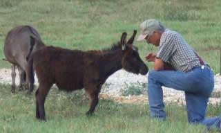 Jeanie says that Jubilee is better than any alarm system they have ever had. When he hears Ronnie's truck coming around the corner, he starts braying and doesn't stop until he gets a few donkey hugs and butt scratches! Then and only then, Ronnie can go in the house! |