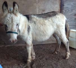 Sold This little jenny is one of less than 125 blue-eyed white miniature donkeys registered in the U.S.A. I wonder if Holly is the only one living overseas in France? |
