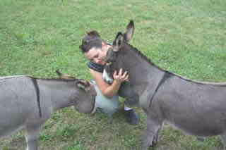 donkeys have moved to their new homes and are enjoying donkey hugs