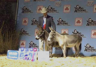 and then went Rosie and Sandy won the two-year old jenny halter class at the 2012 Great Celebration Donkey and Mule Show in Shelbyville, TN. Last year in 2011, she and Harv placed first in the yearling jenny class; way to go Rosie!